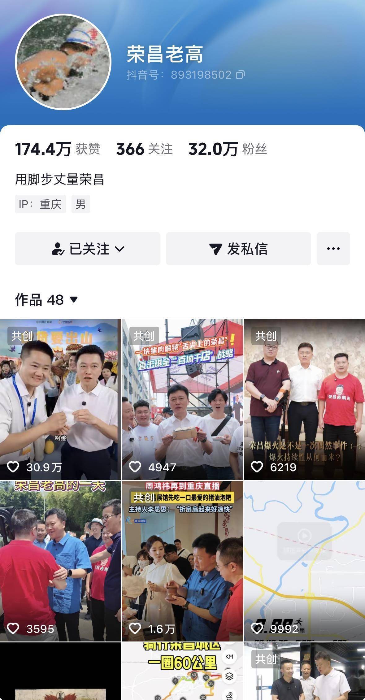 与此一同出圈的,还有荣昌区委书记高洪波和区长万容。高洪波热爱跑步,还在自媒体平台上分享自己的日常生活和工作,该账号现已有32万粉丝;五一长假后,万容邀请荣昌区环卫工人和志愿者在食堂用餐,感谢他们的辛苦和付出,也受到网友的点赞。