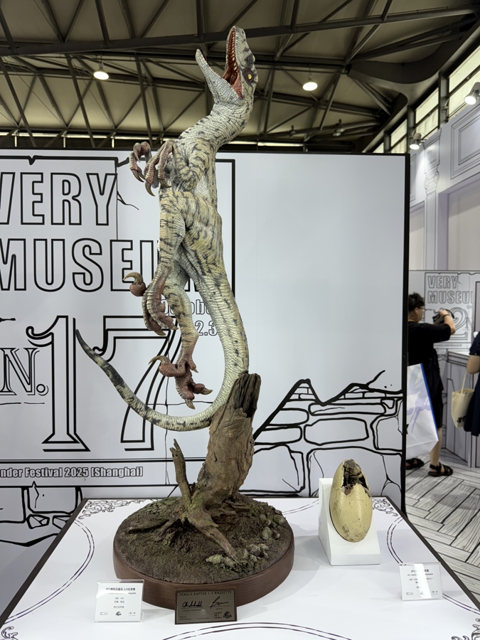 WF展会在上海举办多年,如今从展出产品、内容到观众群体,已不再局限于一般人印象中的“二次元”。展会上,有商家展出涂装精美、栩栩如生的巨大恐龙、鳄鱼等生物,有部分创作者已开始参与影视特效化妆制作等工作。不少观众在这些工作室展陈空间外排起长队,只为细细观察这些模型的造型与涂装细节。在一家以大型影视角色模型为展品的工作室展区里,有人细致地观察金刚狼、小丑、终结者这些电影中需要特殊化妆的角色模型,从皮肤质感到鬓角发丝,“这已经不是手办了,或者可以理解为当代的雕塑。”