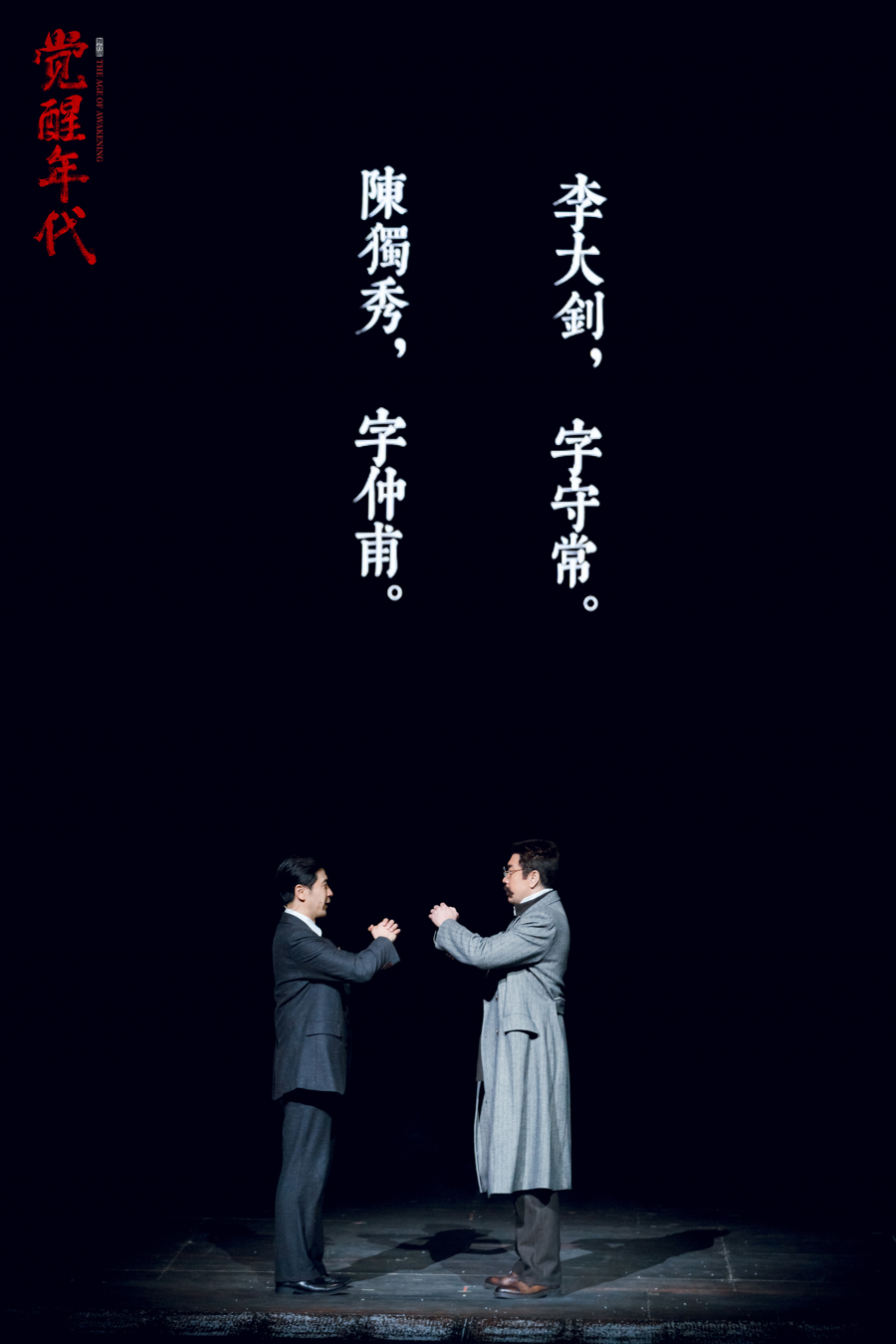 该剧聚焦从1915年《青年杂志》问世到1921年《新青年》成为中国共产党机关刊物这一时段及其折射出的宏大背景,展现了从新文化运动、五四运动到中国共产党成立这一近代史上波澜壮阔的画面。如果说电视剧《觉醒年代》为观众铺陈出上世纪二三十年代试图主宰自身乃至推动家国命运的觉醒者的群像,那么话剧《觉醒年代》就让这些率先觉醒者在观众面前“活”了起来——一位位信仰崇高、学富五车、个性十足且和而不同的君子,在北大校长蔡元培的感召下,组成“北大学者天团”。坚持留辫子、穿袍子,但也能说一口标准流利的英语、希腊语等9国语言的辜鸿铭;学术上反对辜鸿铭“守旧”的钱玄同;著名诗人沈尹默;“想叫醒铁屋子里沉睡的人”的周树人……他们各有所长,即便观点可能各异,但是最终都团结在北大文科学长、《新青年》杂志主导者陈独秀的身边。《狂人日记》就是发表在《新青年》上,“周树人,从今往后就叫鲁迅。”剧中,辜鸿铭还阐释了何谓“中国人的精神”:“中国人精神不朽的秘密,就是中国人的心灵与理智的完美和谐。我辜鸿铭将终身致力于弘扬和传播这种伟大的精神,虽九死而无悔。”这句话出自其用英文写的《中国人的精神》,时至今日,依然振聋发聩。